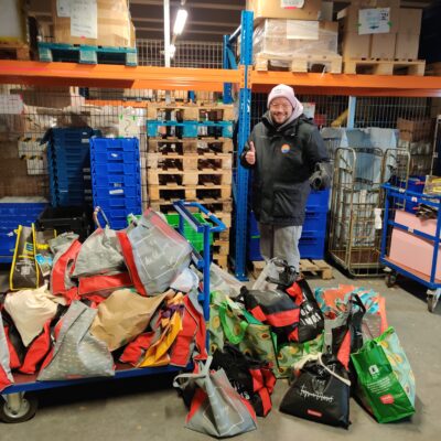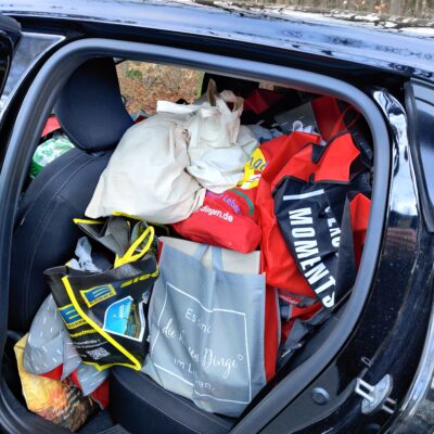 Am Dienstagnachmittag wurden die zahlreichen Spenden von Frau Eichholz zum Lager von GoBanyo gefahren. Dort war Herr Staake überwältigt von der Anzahl der Spenden, damit hatte er nicht gerechnet.
