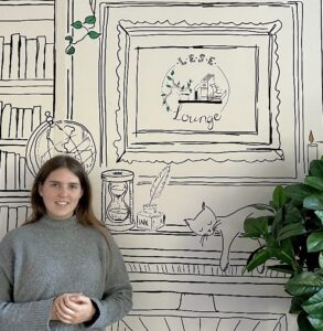 Die Gestaltung des Logos wurde im Kunstkurs des Jahrganges 12 unter der Leitung von Frau Plescher entwickelt. Es gab viele schöne Entwürfe, über die unsere LeseLounge-Besucher abstimmen durften. Gewonnen hat das Design von Natalie (12Biliprofil), das sich wunderbar in die Wandgestaltung der Künstlerin Katharina Heinisch einfügt.