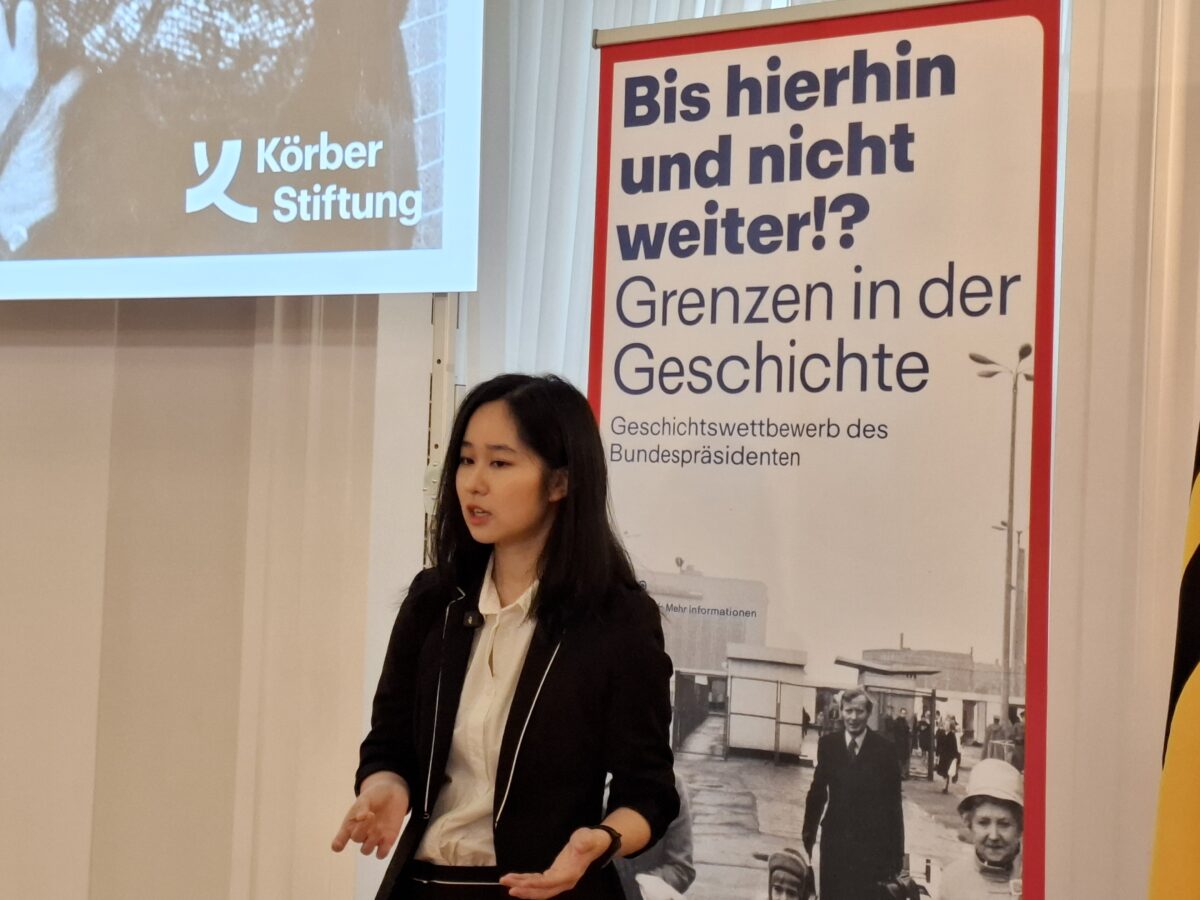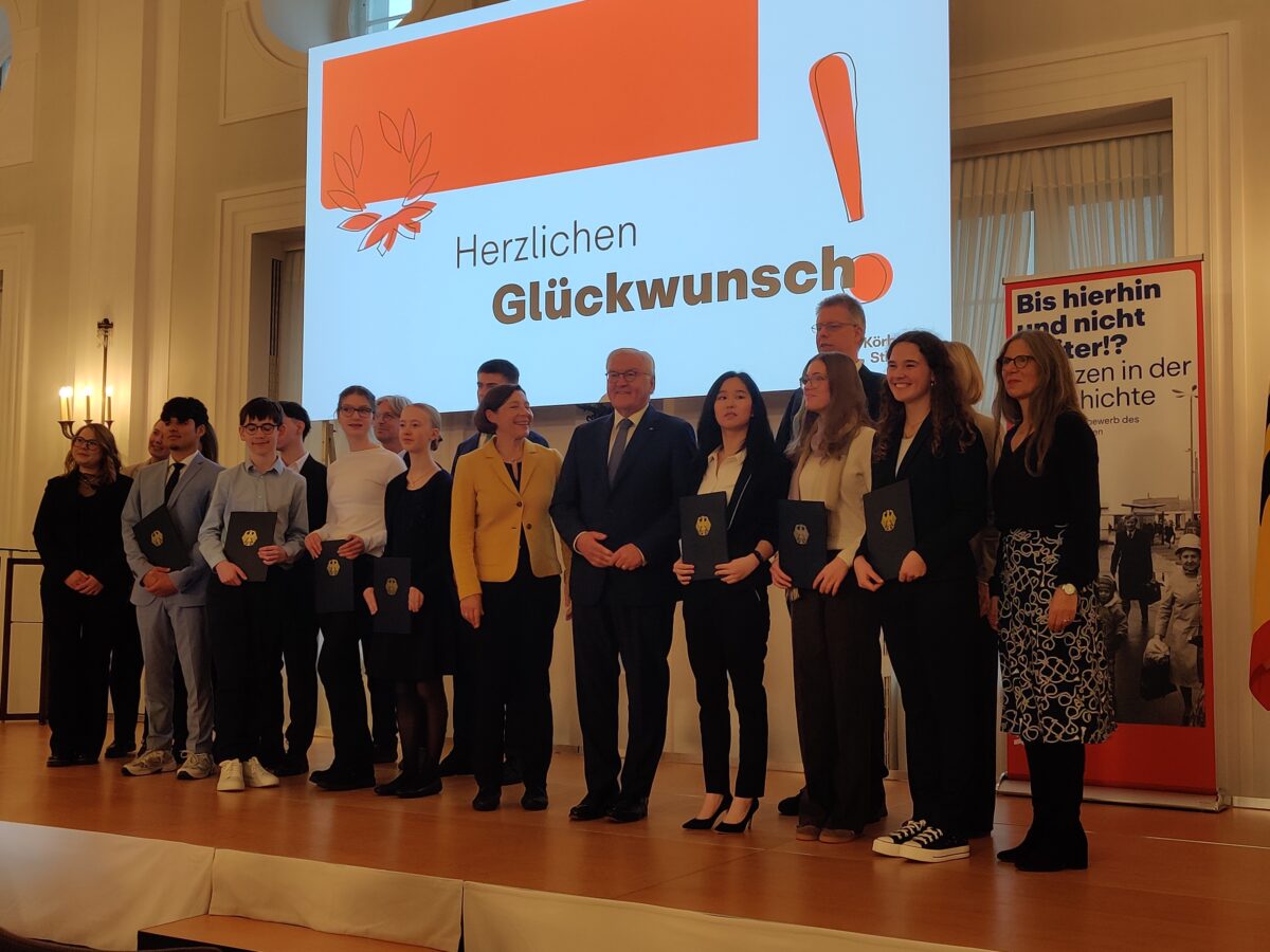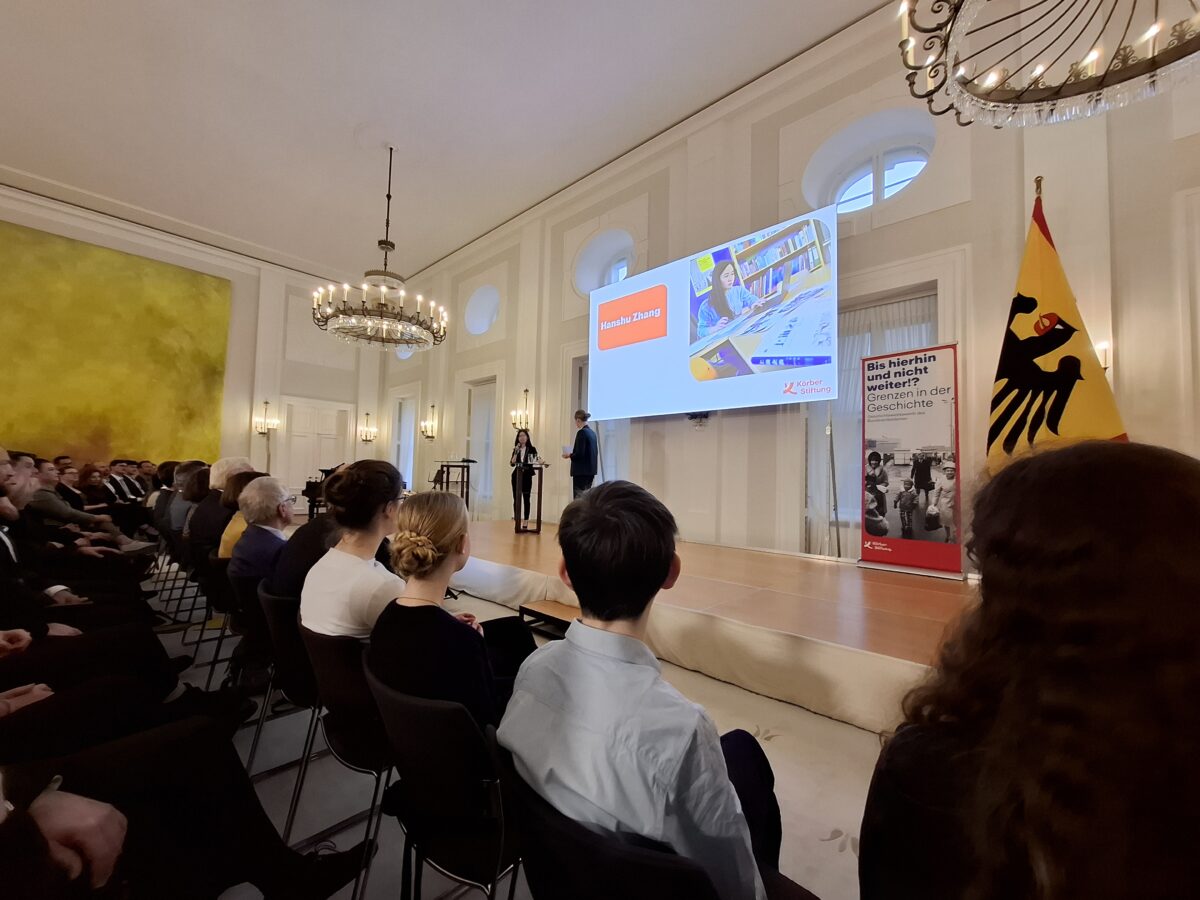 Hanshu Zhang (Abi 25) hat bei der 29. Ausschreibung des Geschichtswettbewerbs des Bundespräsidenten 2024/2025 mit dem Thema: „Bis hierhin und nicht weiter!? Grenzen in der Geschichte“ einen ersten Bundespreis errungen. Das Thema ihrer Arbeit war: „Die Schaffung einer neuen Grenze: Das Ghetto Hongkew. Jüdisches Exil in Shanghai zwischen 1938 und 1943