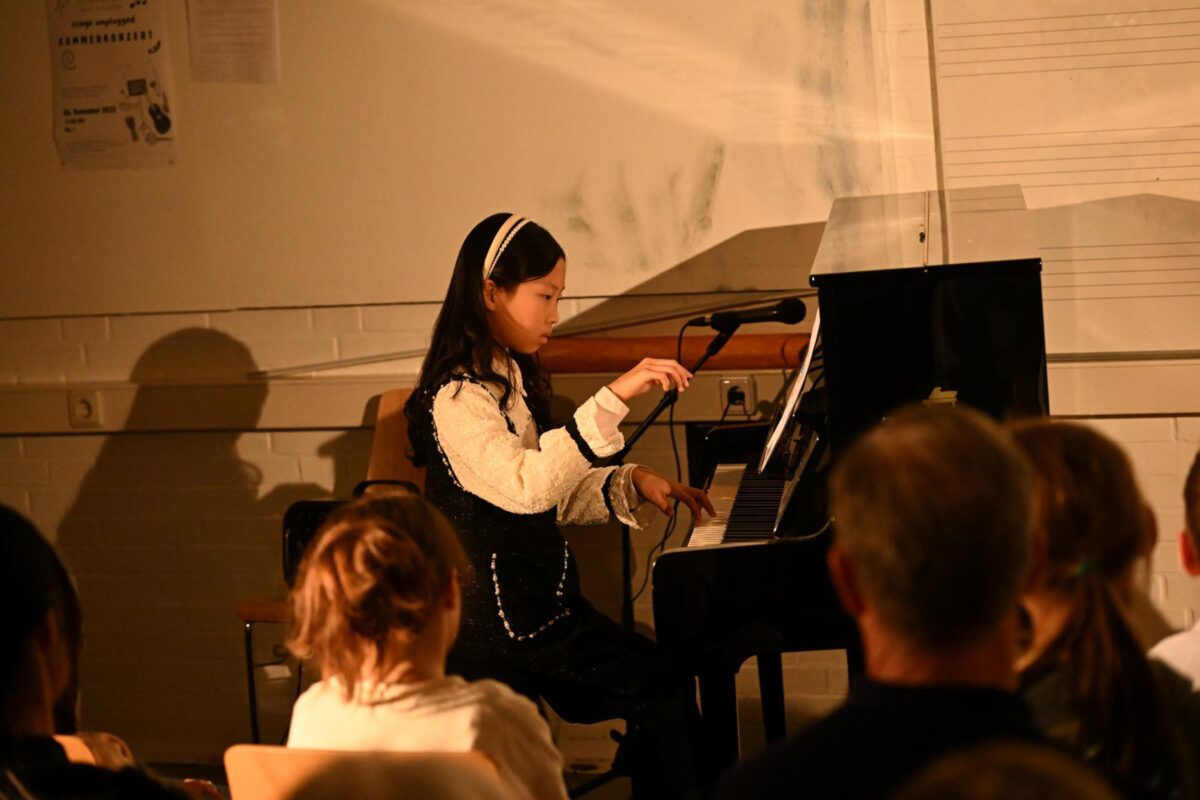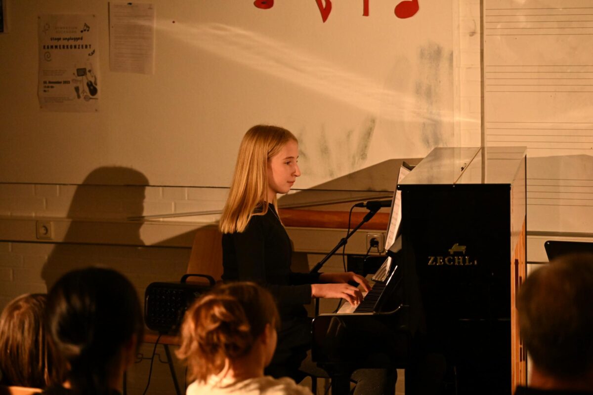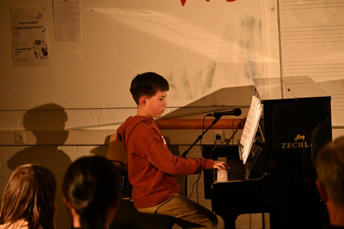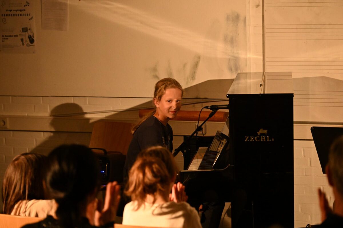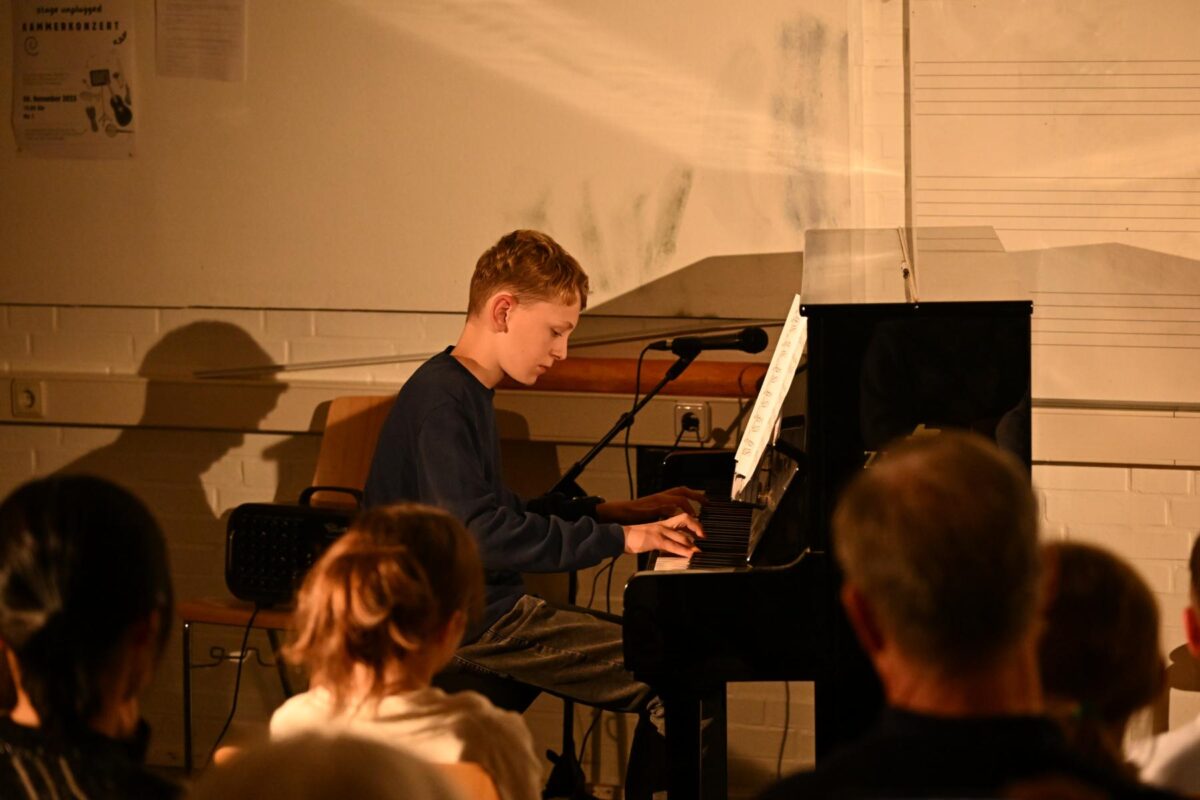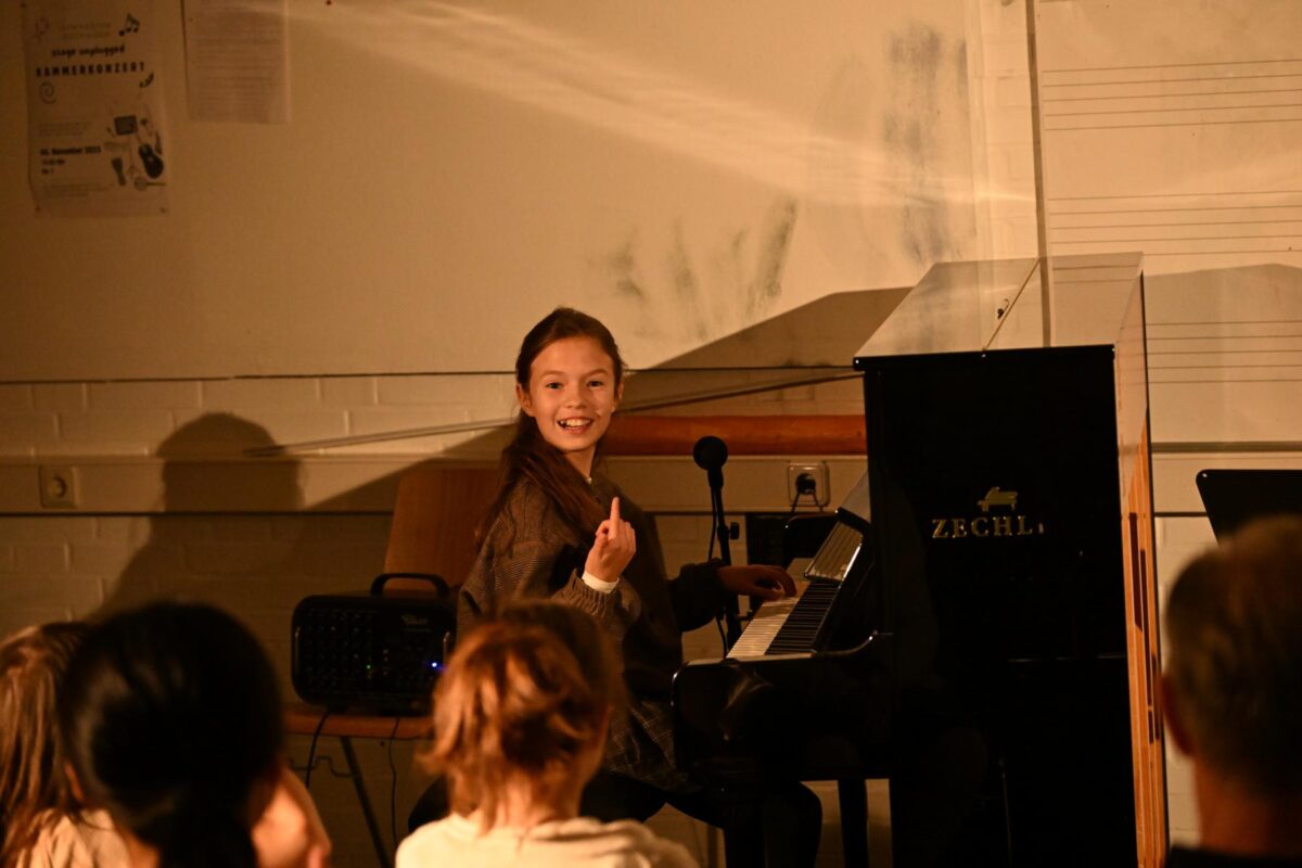 Jedes Jahr im Herbst verwandelt sich an einem Abend der Musikraum in ein Podium für junge Musikerinnen und Musiker. Bei gedimmtem Licht und konzentrierter Stimmung treten Schülerinnen und Schüler der Schule auf und präsentieren dem Publikum ihr musikalisches Können. In diesem Jahr fand das Konzert, das mit eher ruhigen Tönen und dem kleineren Raum eine intimere, persönlichere Seite der Musik zeigt – und so einen spannenden Kontrast zu den großen Schulkonzerten oder Showtime bildet -, am 06.11. statt. Passend dazu erhielt der Abend erstmals den Titel „Stage unplugged“. 19 junge Künstlerinnen und Künstler boten Stücke der sogenannten ernsten Musik, aber auch Popsongs oder Filmmusik dar; zu hören war neben Geige, Cello, Kontrabass, Trompete, Fagott, Gitarre und Gesang vor allem Klavier. Und wieder einmal zeigte sich, welche Talente an unserer Schule zu Hause sind.