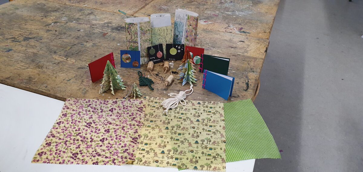 Ob Christbaumanhänger aus Salzteig oder benutztem Papier, selbst gestaltete Weihnachtskarten, Bienenwachstücher, Geschenkanhänger aus Papierrestchen oder Geschenktüten aus alten Büchern – für jede Idee gibt es den passenden Workshop.