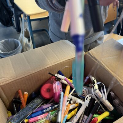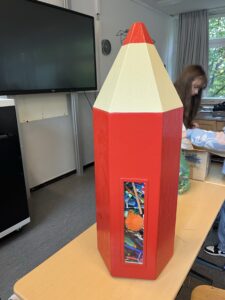 Damit dies nicht nur eine Eintagsfliege war, könnt ihr den Herbstferien eure leeren Stifte immer in den großen Stift in der Pau(l)senhalle werfen, so dass wir kontinuierlich Stifte recyceln können.